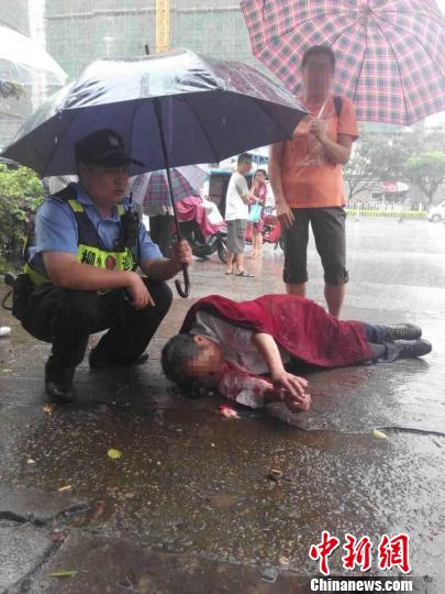 20日上午11时许,一名七旬老汉乘坐柳州市19路公交车到雀山公园终点站后不愿下车,司机一怒之下抄起一把长柄铁锤一路追打老人,老人受伤倒地不省人事,血流不止。好心市民看到后连忙帮其撑伞,拿来雨伞垫住老人头部,并给他盖上毯子遮雨,随后民警和120急救车赶来将老人送往医院救治。