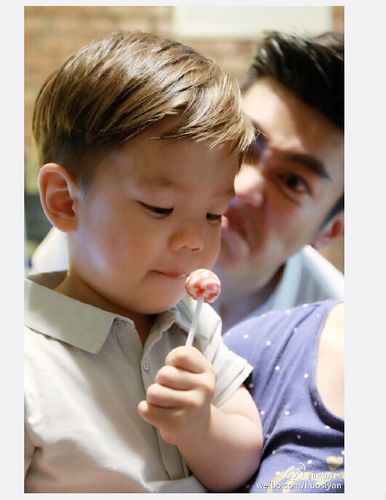 照片中,霍思燕儿子一会儿将棒棒糖含在口中,一会又慢悠悠的用舌头舔食。值得一提的是,杜江还调皮在儿子背后做起鬼脸。网友看到照片后纷纷留言,“好可爱的嗯哼,好想抱抱”、“萌萌哒的一家三口”、“小男神真萌”。