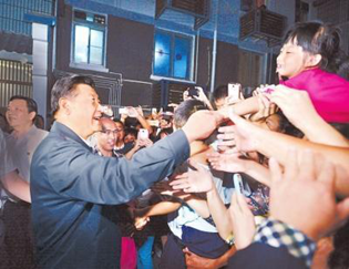 2014年11月1日傍晚,习近平考察福州市军门社区时与孩子们亲切交流,鼓励大家从小热爱科学、立志成才。