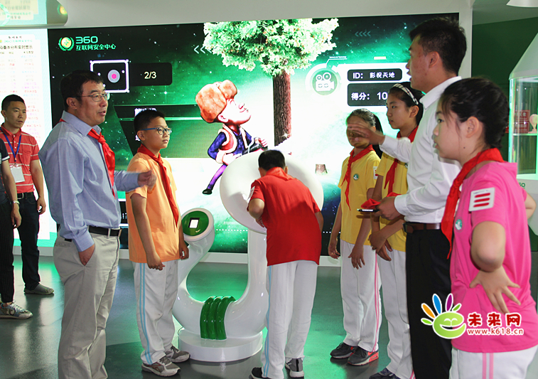 图为2015年6月1日,360总裁齐向东在国家级网络安全青少年科普基地向少先队员们讲解网络安全。未来网 巩帅 摄