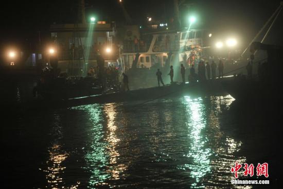 6月3日凌晨,“东方之星”倾覆地长江湖北监利江段开始持续降雨,搜救工作通宵持续进行。 中新社发 陈超 摄