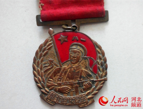 图为常恩书向记者展示的华北解放纪念章。谷怀平摄