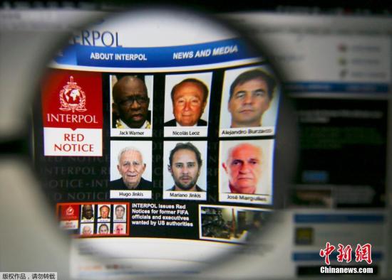 当地时间2015年6月3日,国际刑事警察组织以敲诈和腐败指控,将6名与国际足联(FIFA)有关的官员列入头号通缉犯。