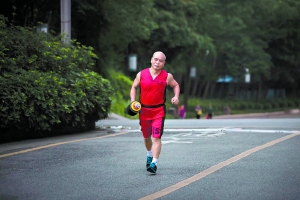他告诉记者,最远的一次长跑,他几乎穿越了小半个广州城。今年4月的一天,凌晨3时,他从家中起跑,翻越整座白云山跑到北部的永泰出口,全程超过20公里。由于要经过不少没有路灯的山间小路,他只能一手握着手电筒,一手提着哑铃往前跑。