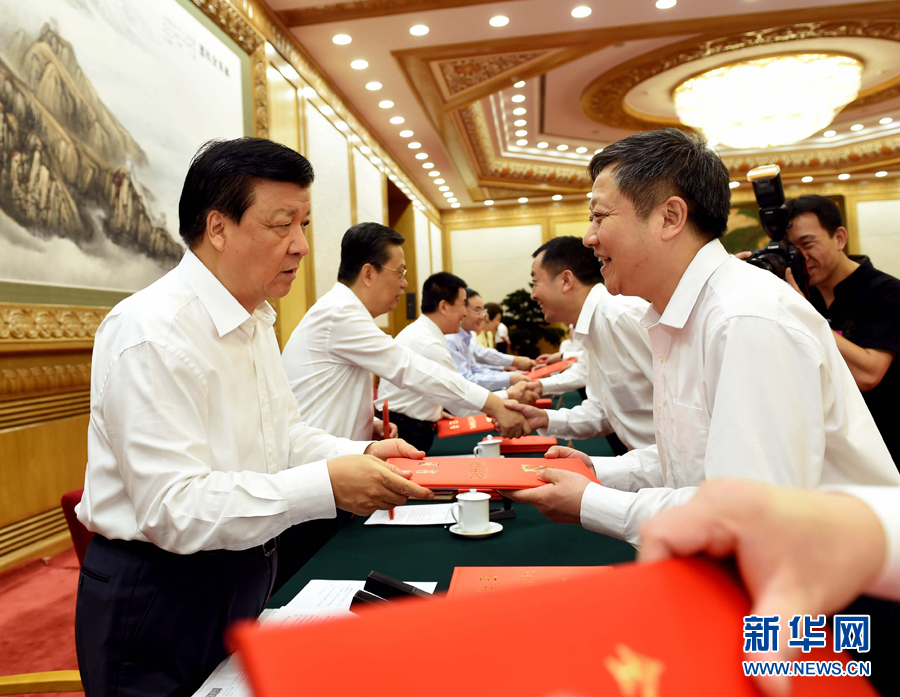 6月30日,中共中央政治局常委、中央书记处书记刘云山在北京人民大会堂出席全国优秀县委书记表彰会议并讲话。这是刘云山为受表彰的优秀县委书记颁发证书。新华社记者饶爱民摄