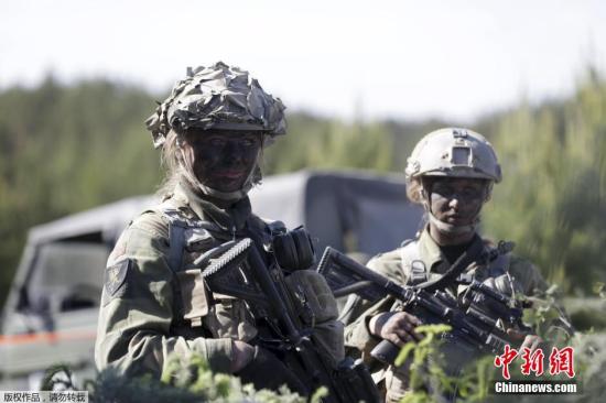 资料图:当地时间2015年6月11日,拉脱维亚Adazi,多国军队参加北约“军刀出击”演习。来自拉脱维亚、立陶宛、挪威、葡萄牙、波兰、斯洛文尼亚、英国和美国等13个北约成员国的6000多名士兵在拉脱维亚、爱沙尼亚、立陶宛和波兰等参加了此次演习。