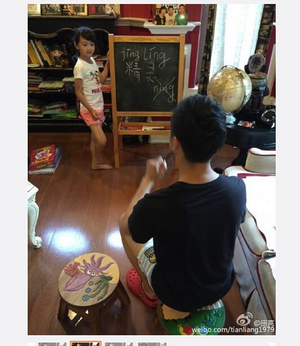 女儿森碟变“老师” 拿小黑板教田亮普通话
