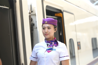 5时10分,记者走上站台,流线型的动车已经停在铁轨上。这趟动车共8节车厢,586个座位,除了1号车厢和8号车厢座位是一等座外,其余均为二等座。一等座一排有4个座位,二等座一排有5个座位,乘坐非常舒适。车上干净整洁,空气清新,还有为残疾人特设的洗手间和乘坐区。另外,还为乘客提供2元一瓶的矿泉水和15元一份的盒饭等食物。
