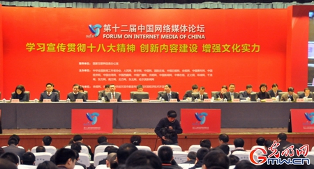 央视网、光明网共同承办的第十二届中国网络媒体论坛在哈尔滨召开,本届论坛以“学习宣传贯彻十八大精神,创新内容建设,增强文化实力”为主题,400多名代表齐聚一堂,共商中国网络媒体未来发展之路。