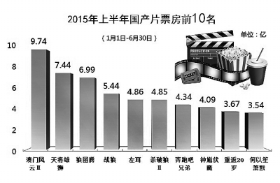 从票房结构看,在上半年超过200亿元的票房收入中,国产影片票房收入95.36亿元,进口影片票房收入108.27亿元,国产影片票房略占下风。不过,随着暑期档国产电影保护月的来临,《大圣归来》《捉妖记》《煎饼侠》等国产人气电影纷纷上映,国产电影票房成功“逆袭”。