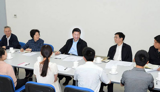 2013年5月14日至15日,习近平在天津考察工作。这是习近平在天津职业技能公共实训中心与高校毕业生、失业人员、农村富余劳动力代表座谈。