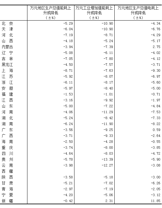 万元工业增加值能耗的统计范围是年主营业务收入2000万元及以上的工业法人企业。公报不含香港特别行政区、澳门特别行政区和台湾省。
