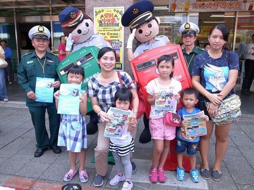 由于在“歪腰邮筒”旁排队人潮众多,台北中山警分局不仅派人疏导交通,也发现现场有很多小朋友,便趁势派出两名警察扮演的Q版警察人偶,到场倡导如何预防诈骗和防扒窃等知识,并发放宣传单,果然吸引不少民众前来仔细聆听,还要求警察人偶一起“歪腰合影”,民众反应热烈,直呼“没想到跟邮筒拍照还能增长知识呢!”