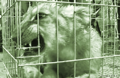 薛场村村民宋先生日前在邻居家门口意外看到一群小鸡被吓得四处逃窜,一只小动物紧追不放。宋先生脱下外套,准备将这只动物抱住,谁知它却龇牙咧嘴,双爪张开,嘴里还发出吼声。宋先生被吓了一跳,赶紧找来几位朋友,有人拿着一只夹狗的夹子慢慢靠近,但它一下就跑出20多米远,几个人急忙追去,将其堵在墙根下,这才抓住,并关进了狗笼。