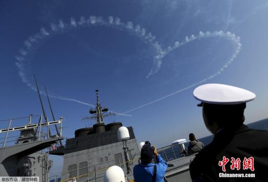 据悉,在当天的观舰式上,隶属美军普天间飞机场(位于冲绳县宜野湾市)的新型运输机MV-22“鱼鹰”也进行了飞行。自卫队36艘舰艇和37架飞机参加了观舰式。除了美国和澳大利亚的海军外,韩国、印度和法国的海军舰船也首次接受了检阅。