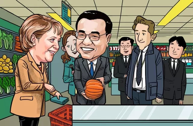 2014年10月李克强总理再次访德,默克尔邀请他一起逛超市,并买了两张明信片请总理寄给夫人和女儿。
