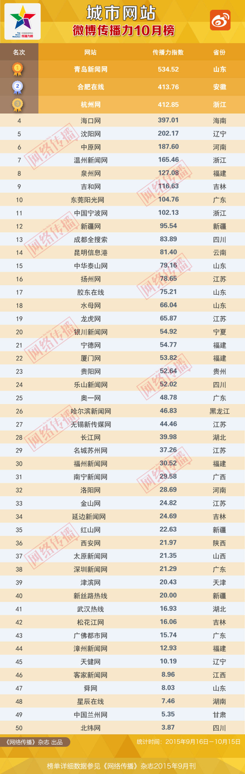 城市网站 微博传播力10月榜