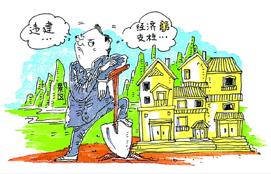 “一些地方政府出于经济利益的考虑,睁只眼闭只眼,致使景区违建屡禁不止。”河北省人大法制委员会委员侯凤梅日前对《法制日报》记者说。