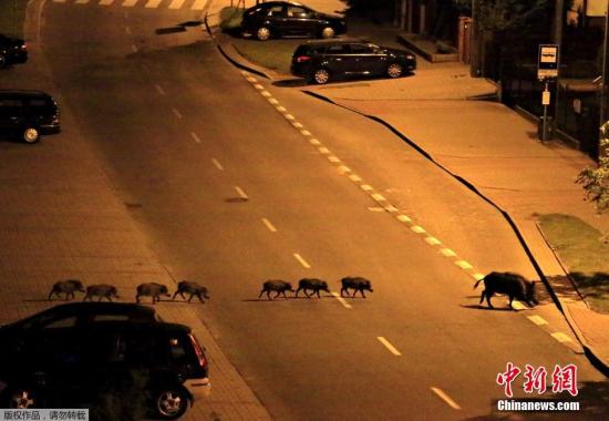 资料图:野猪群过马路。