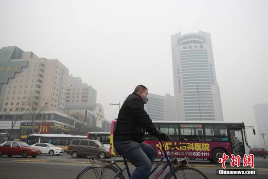 资料图 12月9日,山西太原,当日6时中央气象台继续发布霾橙色预警:预计,9日08时至10日08时,北京、天津、河北中东部、辽宁西部、山西中南部、陕西关中、河南、山东西北部等地有中度霾,其中,北京南部、河北中南部、河南中北部等地的局部地区有重度霾。图为民众戴口罩霾中出行。 中新社记者 韦亮 摄