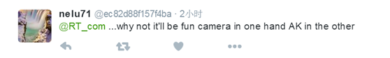 网友@nelu71称:“干嘛不去,一手拿相机,一手拿步枪多有趣!”