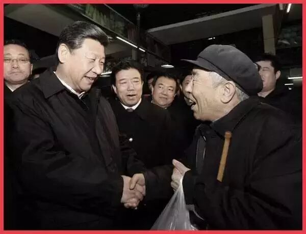 习近平来到兰州市城关区五泉菜市场,同市场经营户和前来购物的群众亲切交谈。当看到总书记突然出现在菜市场时,人群沸腾了,购置年货的群众纷纷拥了上来,总书记走到哪里,人群就跟到哪里。