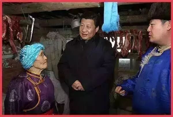 习近平来到锡林郭勒盟81岁的牧民玛吉格家,在蒙古包中同一家人围坐在一起,拉起家常。“小孩上学远不远?”“看病、购物方便不方便?”“家里养了多少只羊、多少匹马?”“收入怎么样?”习近平问得很细。