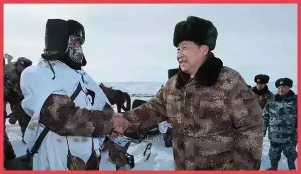 习近平迎风踏雪来到内蒙古军区边防某部,走巡逻线路,登观察哨所,进连队班排,亲切看望慰问戍边官兵。他对战士们说:“今天,我和你们一起执勤站岗。”