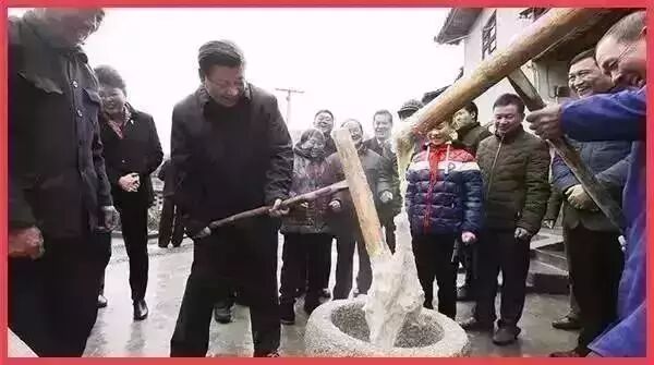 红军烈士后代左秀发一家正在准备年货。总书记来到他家门前,拿起木槌,同村民一起打糍粑。看到左家加工竹制工艺品,养娃娃鱼,听说年后要改造房子,总书记十分高兴,希望一家人早日住上新房,生活越来越好。他叮嘱老人的孙子好好学习。
