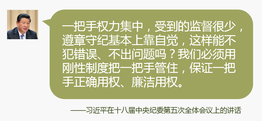 一把手位高权重,一旦出问题,最容易带坏班子、搞乱风纪。一把手权力集中,受到的监督很少,遵章守纪基本上靠自觉,这样能不犯错误、不出问题吗?我们必须用刚性制度把一把手管住,保证一把手正确用权、廉洁用权。这不是对干部要求苛刻,而是爱护和保护干部。领导干部要自觉接受组织和群众监督,这对自己有好处,可以警醒自己始终秉公用权,避免跌入腐败的陷阱。