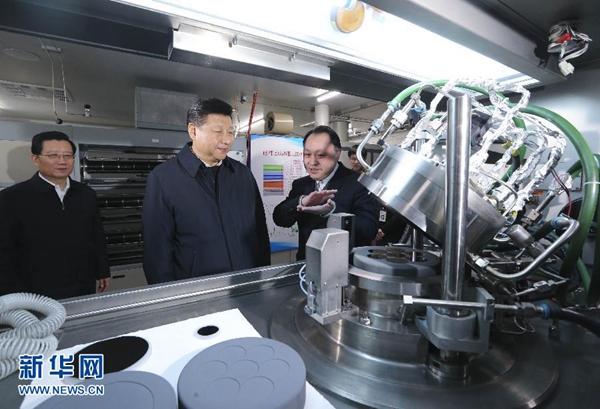 2016年2月3日,习近平在南昌大学国家硅基LED工程技术研究中心实验室考察。新华社记者 兰红光 摄