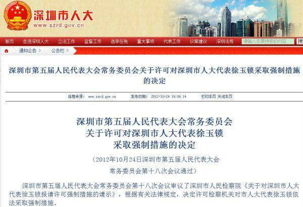 ¡¡¡¡ÐìÓñËøÊÇÉîÛÚÊÐÈË´ó´ú±í¡£10ÔÂ24ÈÕÍí£¬ÉîÛÚÊÐÈË´óÍøÕ¾Åû¶£¬ÊÐÎå½ìÈË´ó³£Î¯»áͨ¹ýÁË¡¶¹ØÓÚÐí¿É¶ÔÉîÛÚÊÐÈË´ó´ú±íÐìÓñËø²ÉÈ¡Ç¿ÖÆ´ëÊ©µÄ¾ö¶¨¡·¡£ÉîÛÚÊÐÈËÃñ¼ì²ìÔºÌáÆðÁË¡¶¹ØÓÚ¶ÔÉîÛÚÊÐÈË´ó´ú±íÐìÓñËø±¨ÇëÐí¿ÉÇ¿ÖÆ´ëÊ©µÄÇëʾ¡·ºó£¬ÊÐÈË´ó³£Î¯»á×÷³öÁ˸þö¶¨£¬Ðí¿É¼ì·½¶ÔÈË´ó´ú±íÐìÓñËø²ÉÈ¡Ç¿ÖÆ´ëÊ©¡£¸ù¾ÝÎÒ¹úÏÖÓз¨Âɹ涨£¬¶ÔÈË´ó´ú±í²ÉÈ¡Ç¿ÖÆ´ëÊ©±ØÐë¾ÈË´ó³£Î¯»áÐí¿É¡£