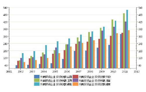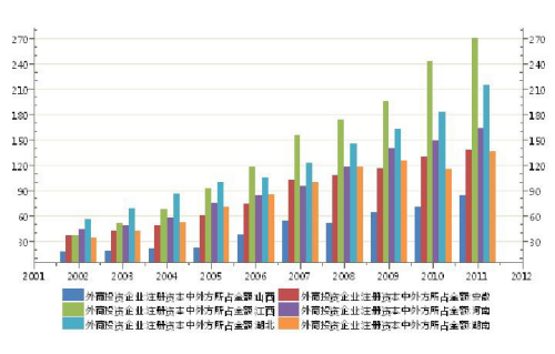 ¡¡¡¡(¶þ)ÀûÓÃÍâ×ÊÈ¡µÃнøÕ¹¡£10ÄêÀ´£¬Öв¿µØÇøÍâÉÌÖ±½ÓͶ×ÊÆóÒµÓÉ2002ÄêµÄ13459¼ÒÔöÖÁ2011ÄêµÄ39336¼Ò£¬Õ¼È«¹ú×ÜÊý±ÈÖØÓÉ6%Ìá¸ßÖÁ9%£»ÍâÉÌͶ×ÊÆóҵͶ×Ê×ܶîÀÛ¼ÆÓÉ616ÒÚÃÀÔªÔöÖÁ2431ÒÚÃÀÔª£¬Ôö³¤4±¶£¬Äê¾ùÔö³¤16.7%£¬Õ¼È«¹ú±ÈÖØÓÉ6%Ìá¸ßÖÁ8%£»ÀÛ¼ÆÊµ¼ÊʹÓÃÍâ×Ê(×¢²á×ʱ¾ÖÐÍâ·½ËùÕ¼½ð¶î)ÓÉ222.8ÒÚÃÀÔªÔöÖÁ1004ÒÚÃÀÔª£¬Ôö³¤4.5±¶£¬Äê¾ùÔö³¤18.2%£¬Õ¼È«¹ú±ÈÖØÓÉ6%Ìá¸ßÖÁ8%¡£2006ÄêÒÔÀ´£¬Öв¿²©ÀÀ»á³ÉÎªÍÆ¶¯Öв¿ÁùÊ¡À©´ó¶ÔÍ⿪·ÅºÍ¼ÓÇ¿ÇøÓò¼°¹ú¼Ê½»Á÷ºÏ×÷µÄÖØÒªÆ½Ì¨£¬¹²¼ÆÇ©ÊðÀûÓÃÍâ×ʺÏͬÏîÄ¿2254¸ö£¬ºÏͬÀûÓÃÍâ×Ê1057.5ÒÚÃÀÔª¡£