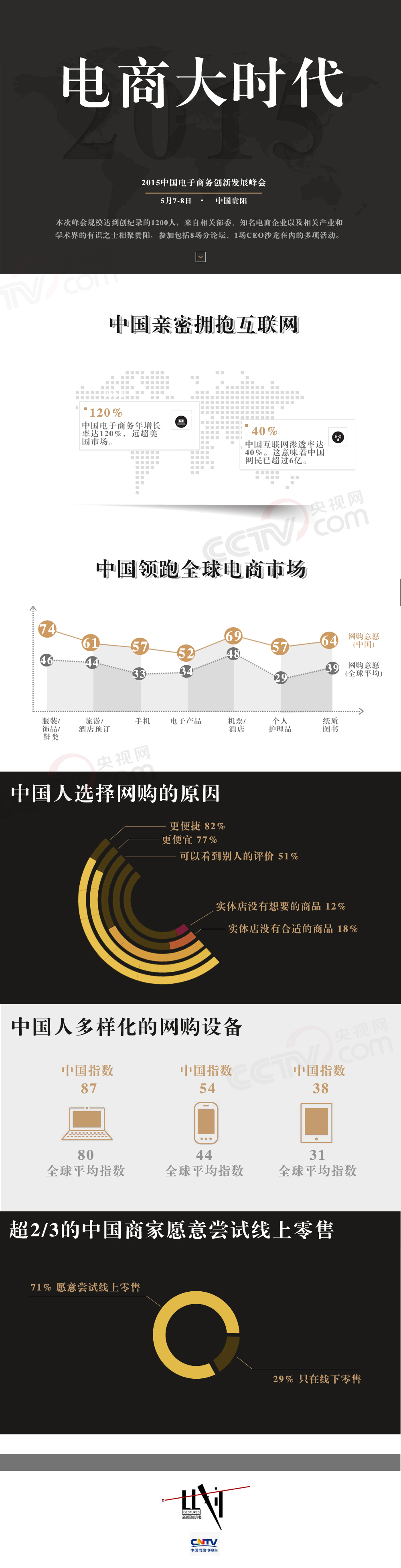 2015中国电子商务创新发展峰会是在国家发改委、中央网信办、海关总署、工商总局、质检总局、国家邮政局等部委联合指导下,由中国网络电视台主办、贵阳市人民政府承办的电子商务行业规模最大、层次最高、最具影响力的年度盛会。2015年峰会主题为“拥抱电子商务+”,峰会于2015年5月7日在中国•贵阳举行。