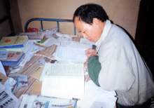 姜锦程置了套修鞋的工具,在青岛的街头摆起了修鞋摊,以维持个人生计。为了省下房租给老家的兄妹俩多寄点学费,他总是在建筑工地上住宿,给工地上的老板看大门,每天吃的仅是1斤大米,或者1斤挂面,偶尔配点咸菜,生活就这样一天天地维持着。