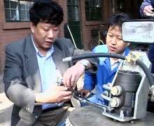 可光有动力不行,关键还要有专业技术和实践经验。文化低底子薄的张永江,既没技术也无经验,连机械制图常识都不懂,要把设想和构思变成现实,对他来说压力很大。他既不会画又不会算,更谈不上设计了。他凭着想像中的机器结构模样,到废品站去,用略高于废铁的价格,今天买个齿轮,明天买个皮带轮,后天再去买个轴承座……为了买个合适的零部件,他要翻一大堆废铁。好多次,他的手脚被垮塌下来的废铁砸压得皮开肉绽,磕碰得青紫红肿是常有的事。实在买不到的就加工定做。