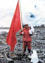 当时我国的考察队员跟智利考察队方面据理力争,说南极是国际共有的地方,不是哪一个国家的,谁要是说哪片土地属于哪一个国家的,是没人承认的;我们中国要在这里建站,对南极进行考察,是要为整个人类做贡献,不是为某一个国家的利益、局部的利益。智利方面最后只好拔掉旗子,通知中国先遣队的队员们登陆。