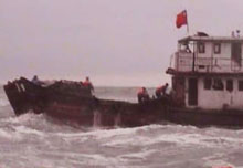下午2时,搜寻艇又接到报警台的报告:说筱埕海带区那儿有个渔民看到一艘台轮,很像广播里通报的那艘船。于是,搜寻艇急忙调头向海带区驶去。