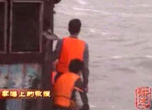 第二次选择在船尾跳帮。这时海浪比刚才稍大了些,搜寻艇和那艘小船都被海浪打得晃晃悠悠地很难靠在一起了。大家都眼巴巴地等着再寻个机会靠上去,可两艘船就一直若即若离地随着海浪飘荡。不知过了多长时间,大家都等得焦急了。好不容易又逮着一个机会,小沈又准备起跳了。这次他在船舷边,瞅准机会脚下一使劲,身体就向前纵去……就在这时,哗--地又一个大浪打来,两艘船嗖的一下就分开了,眼看已腾空的小沈就要坠入海中,船上的人不约而同"啊--"地全都惊叫了起来。