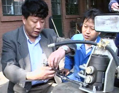 可光有动力不行,关健还要有专业技术和实践经验。文化低底子薄的张永江,既没技术也无经验,连机械制图常识都不懂,要把设想和构思变成现实,对他来说压力很大。他既不会画又不会算,更谈不上设计了。他凭着想像中的机器结构模样,到废品站去,用略高于废铁的价格,今天买个齿轮,明天买个皮带轮,后天再去买个轴承座……为了买个合适的零部件,他要翻一大堆废铁。好多次,他的手脚被垮塌下来的废铁砸压得皮开肉绽,磕碰得青紫红肿是常有的事。实在买不到的就加工定做。