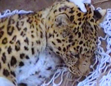 金钱豹运回陕西省野生动物抢救中心后,通过仔细检查,发现它肠胃消化不良,且有外伤。抢救人员立即对它进行了及时治疗,成活是没问题了,但还要经过一段时间的治疗和观察。该抢救中心打算等这只金钱豹完全康复后,即选择一个合适之处,将它重新放归大自然。