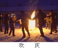 为了告别敖鲁古雅,族人们跳起了传统的祈福舞:啊哈嘞,啊哈嘞,我们手牵手,奔向明天,祝福来年……