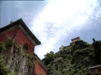 赵忠祥:武当山不仅以其秀美绚丽的自然景色著称于世,更以其宏伟轩敞的道教宫观闻名天下。武当山的古建筑,始于唐代,兴于宋代,盛于元代,到了明代达到鼎盛。明朝永乐皇帝朱棣在位时,大规模修建武当山。当时流传着一句话,叫“北修皇宫,南修武当”,也就是现在的故宫。另外,还有一种浪漫而又比较确切的说法,那就是把武当山建筑称作“挂在悬崖上的宫殿”。