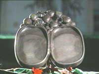端砚产于广东肇庆,居中国“四大名砚”的首位,到现在已经有1400多年的历史。肇庆古时属端州,端砚因此而得名。初唐时期,古端州东郊羚羊山一带出现了采石、制砚的劳动者,逐渐制作出了砚台这种独特的工艺品,历代皇朝也把它列为贡品。端溪砚石石质特别幼嫩、纯净、细腻、滋润、坚实、严密。制成的砚有“呵气可研墨,发墨不损毫”的特色。一方端砚的问世要经过探测、开凿、运输、选料、整璞、雕刻、打磨、洗涤、配装等十几道艰辛而细致精巧的工序。端砚的雕刻更是就石状物,千奇百趣,栩栩如生。