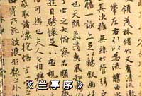 东晋时期有个风俗:每年的阴历三月三日,人们必须去河边举行“修禊”活动以消除不祥。永和九年的三月三日,王羲之和文人朋友共四十一位来到兰亭河边,把轻便的酒杯羽觞放在水上,顺水而下,每人顺序取觞,饮酒作诗。写不出诗的都要被罚酒。当天有26人作诗,一共写了35首,更喝了不少酒。做完诗,大家把诗收集起来合成一本《兰亭集》,公推王羲之作序。这时,他已酒醉,趁着酒意,即席挥毫,这就是名震千古的《兰亭集序》。据说,几天以后,王羲之再重写近百次,但总比不上他当天即兴完成的作品。《兰亭集序》被誉为中国书法史上最伟大的作品,唐太宗得到原本以后,命最好的书法家临摹许多副本,原件则被他作为自己的陪葬品而失传。而令人欣慰的是,我们还可以看到王羲之的其他书法作品,以领略这些传世的珍宝。