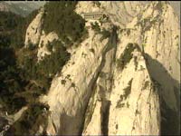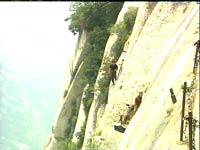 自古华山一条路,更准确地说,自古华山没有路,现在这条路的开凿年代到现在大约不到两千年,华山的道路修通,大约在魏晋南北朝时期,一个偶然的机会,有人发现,现在的千尺幢有个猿猴在向上攀登,这个猿猴能上去,能上到北峰上,这就解决了华山第一步登山的问题,人们沿着猿猴的路线,开始凿手窝脚窝。