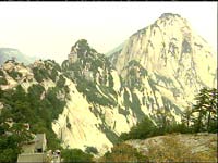 华山地质构造就是花岗岩,地质地貌,就是大约在古中生代,中生代的时候,一大块完整的花岗岩侵入到固态化群的岩层之中,七千万年左右的时候,华山地区有造山运动,使华山地区强烈抬势,渭河平原下降,华山抬势,就把华山突兀起来,形成斧劈刀切。华山这么大一块花岗岩,还有人能够把它形如刀劈吗?那他就联想到劈山救母的故事,故事是从元代开始流传的,这里面大概是讲二狼山杨间的弟弟思凡嫁给一个老百姓,最后翻脸给他压到地下了,最后他儿子陈香把华山劈开,救出母亲。