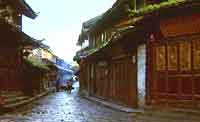 茶马古道是唐宋以来由西南各民族的马帮经营普洱茶及土特商货而形成的一条商贸古道。千百年来,无数的马帮在滇西北的崇山峻岭中默默地赶路,他们不仅带来了商品,同时也促进了各民族间的文化交流。从这张地图上我们可以看出,丽江古城是内地经过拉萨,通往印度、尼泊尔、西亚等地的必经之地,又是滇藏贸易的交汇点和贸易集散地。丽江是茶马古道入藏的起点,云南段的终点。背风向阳、地势开阔,便于放马和休息,自然成为马帮宿营和贸易的理想之地。于是形成了以四方街为中心的“商贾云集、店铺林立”的商贸集市。