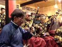 纳西古乐也称道教洞经音乐,盛行于唐宋时期的中原地区,明清传入丽江。纳西古乐因保存了部分在中原失传的曲牌,被音乐界称为“活着的音乐化石”。十九世纪八十年代,这些古老的曲牌,一直是丽江老人们闲暇和喜庆时,不可少的风韵雅事。随着时光的流失,这些口授心传的曲牌,也随着那些执艺老人的先后离世而不断地消失。今年七十二岁的宣科,纳西族 ,又有藏族的血统。毕业于教会学校,是丽江古城惟一穿牛仔裤的老人,是这个人称鬼才的宣科,1989年在丽江地区中学退休后,潜心研究纳西古乐,成立了大研古乐会 ,自任会长。如今,宣科仍致力于古乐的传承与研究,他的古乐会以 “三老” 著称。一是古乐会都是年逾古稀的老人,二是使用的乐器,有些是超过百年的古乐器。三是演奏的曲牌是纯正的古曲。