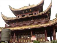 岳阳楼坐西朝东,构造古朴独特,气势恢宏凝重。岳阳楼台基以花岗岩围砌而成,台基宽度17.24米,进14.54米,高度为0.65米。岳阳楼高度19米,在建筑风格上,前人将其归纳为木制、三层、四柱、飞檐、斗拱、盔顶。岳阳楼是纯本结构,整座建筑没用一钉一铆,如此雄伟的楼阁,仅靠木制构件的彼此勾连,既要承接无数游人的重量,又要经受岁月的剥蚀而昂然耸立了上百年,如此精湛的建筑工艺,实在让人叹为观止。“四柱”指的是岳阳楼的基本构架,首先承重的主柱是四根巨大的楠木,被称为“通天柱”从一楼直抵三楼。除四根通天柱外,其余的柱子都是四的倍数。其中廊柱有12根;檐柱是32根。这些木柱彼此牵制,结为整体,既增加了楼的美感,又使整个建筑更加坚固。“斗拱”是我国建筑中特有的结构,由于古代建筑中房檐挑出很长,斗拱的基本功能就是对挑出的屋檐进行承托。这种方木块叫做“斗”,托着斗的木条叫做“拱”,二者合称斗拱。岳阳楼的斗拱结构复杂,工艺精美,几非人力所能为,当地人传说是鲁班亲手制造的。斗拱承托的就是岳阳楼的飞檐,岳阳楼三层建筑均有飞檐,叠加的飞檐形成了一种张扬的气势,仿佛八百里洞庭尽在掌握之中。三层的飞檐与楼顶结为一体,这顶就是岳阳楼最突出的特点——盔顶结构。据考证,岳阳楼是我国目前仅存的盔顶结构的古建筑。儒雅的岳阳楼因为将军的盔顶而平添了一番威武,刚柔相继,岳阳楼更加雄浑。